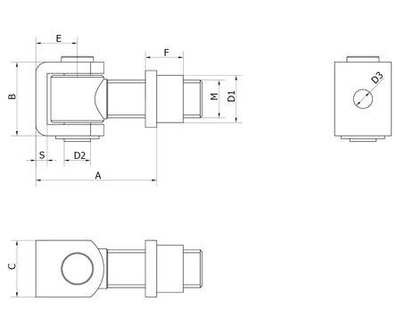 | Art. | M | A min/max | B | C | D1 | D2 | D3 | E | F | S | 1pc | ||