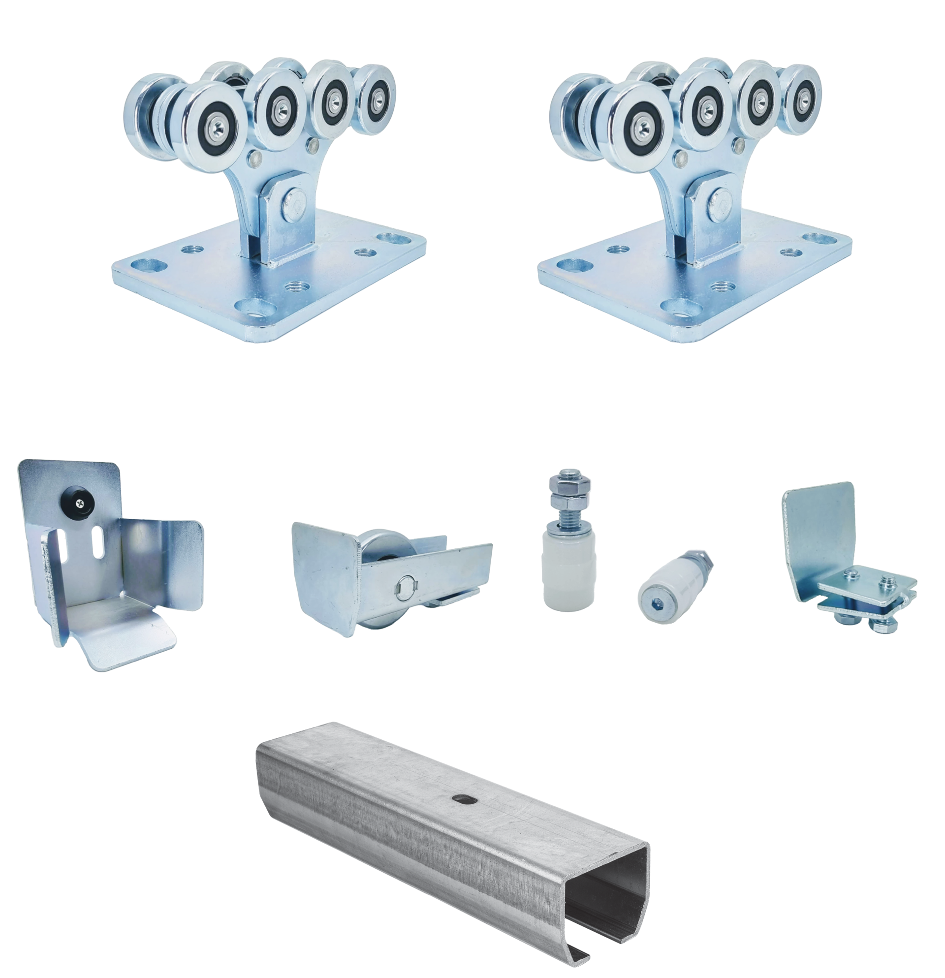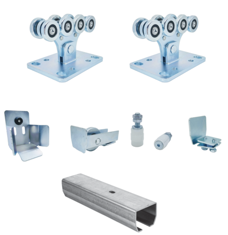 Zostava pre samonosné posuvné brány do 350kg. Všetko čo potrebujete na zhotovenie kvalitnej samonosnej posuvnej brány bez pohonu.