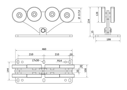 Nosný vozík pre samonosnú posuvnú bránu do hmotnosti 1200kg a maximálnej svetlosti prejazdu 13,5m. Vozík je určený pre použitie so šínou (c profilom) typu STAGE LB , STAGE LZ .