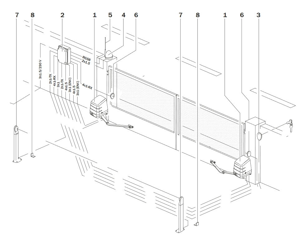 Kompletná sada pohonu pre krídlovú bránu. Pohony brán a brán do max. dĺžky jedného krídla 2,8 ma hmotnosti 300kg.