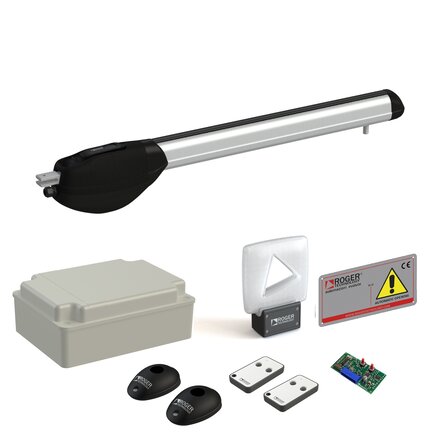 Originál sada pohonu a príslušenstva od ROGER Technology pre krídlovú bránu!! Pohon pre jednokrídlové brány do dĺžky krídla max. 5m je možné použiť pre otváranie dovnútra, ako aj pre otváranie smerom von.