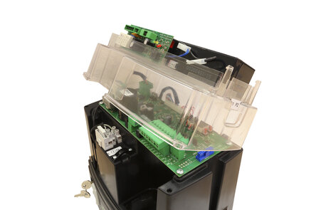 - Enkodér neustále pri pohybe kontroluje pozíciu a rýchlosť brány. Pokiaľ zistí nejakú prekážku, bránu zastaví.