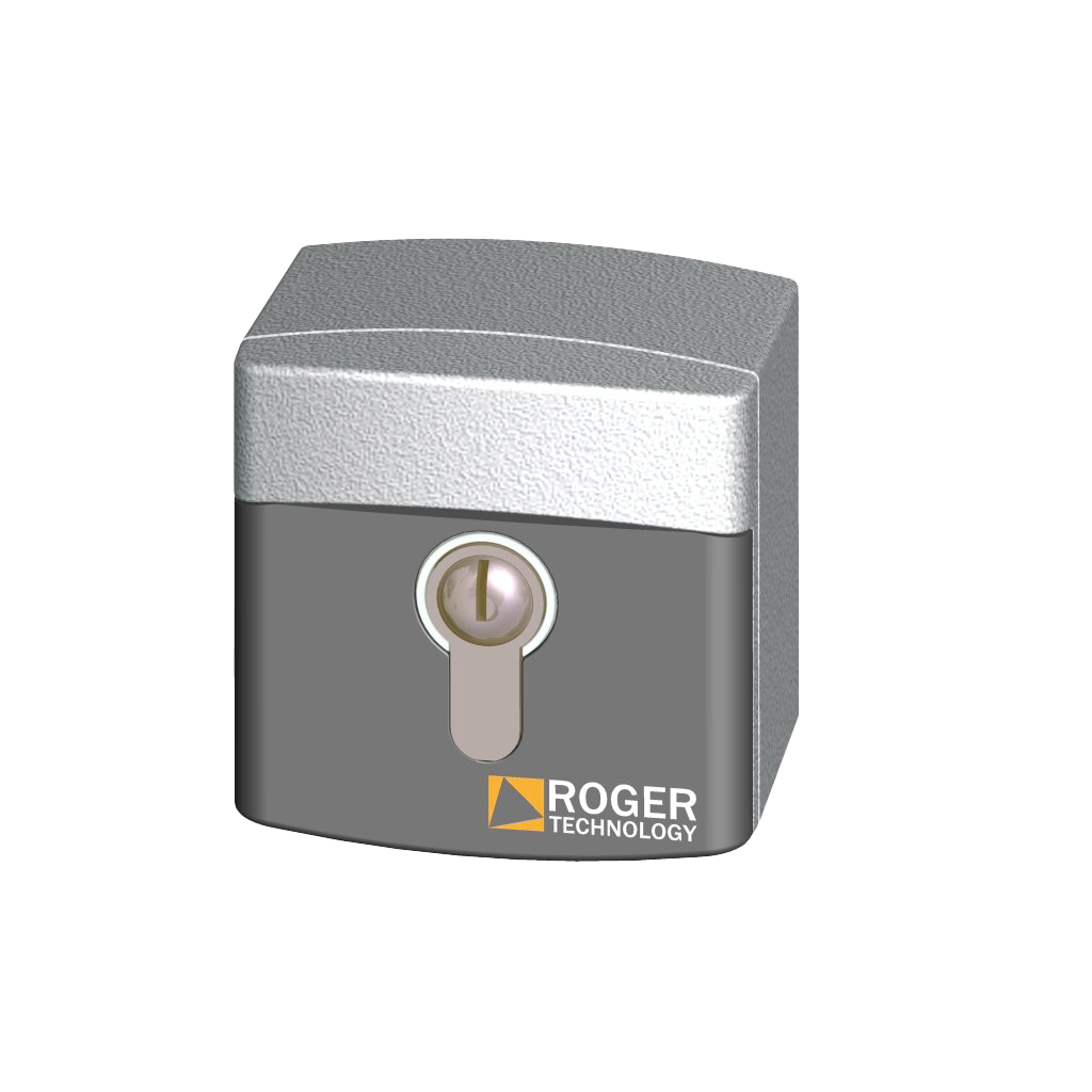 Originál kľúčový spínač ROGER Technology zo zliatiny hliníka na ovládanie brány bez diaľkového ovládača. Súčasťou sú dva kusy kľúčov.